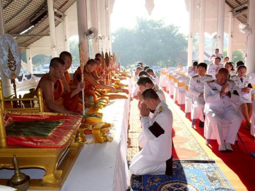 พระสงฆ์ จำนวน 10 รูป สวดเจริญพระพุทธมนต์ และทำบุญตักบาตรถวายพระราชกุศล
