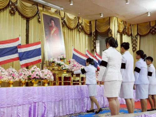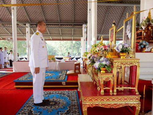 พิธีวางวางพุ่มดอกไม้ถวายสักการะสมเด็จพระเจ้าภคินีเธอ เจ้าฟ้าเพชรรัตนราชสุดา สิริโสภาพัณณวดี